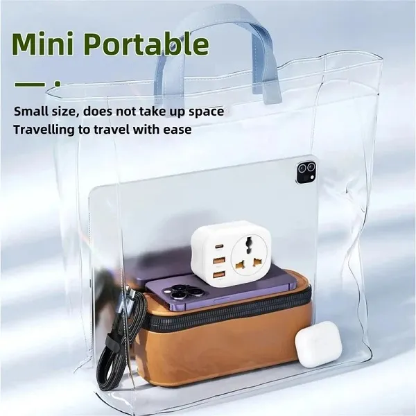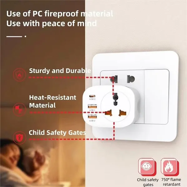برخورداری از پلاگ های تاشو از نوع US، UK و EU، مجهز به 2 پورت USB-A و 1 پورت USB-C |