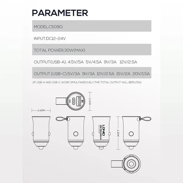 شناسه محصول: Ldnio C509Q 2 Port Car Charger 30W گارانتی: 6 ماه